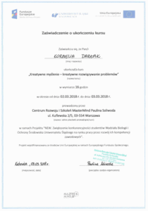 Regularnie podnoszę kwalifikacje, m.in. w zakresie: