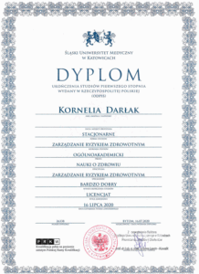 licencjat z Zarządzania Ryzykiem Zdrowotnym (Śląski Uniwersytet Medyczny w Bytomiu)