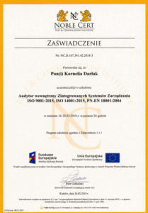 certyfikat audytora wewnętrznego ISO 14001:2015 (ochrona środowiska)
